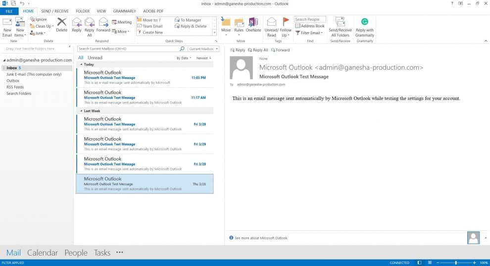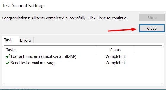 Daha sonra ise bir üstteki ekran görüntüsündeki Next (İleri) tuşuna tıklayın. Outlook, hesap ayarlarınızı test ederek çalışıp çalışmadığını kontrol edecektir. Başarılı olursa aşağıdaki ekranıgörürsünüz.